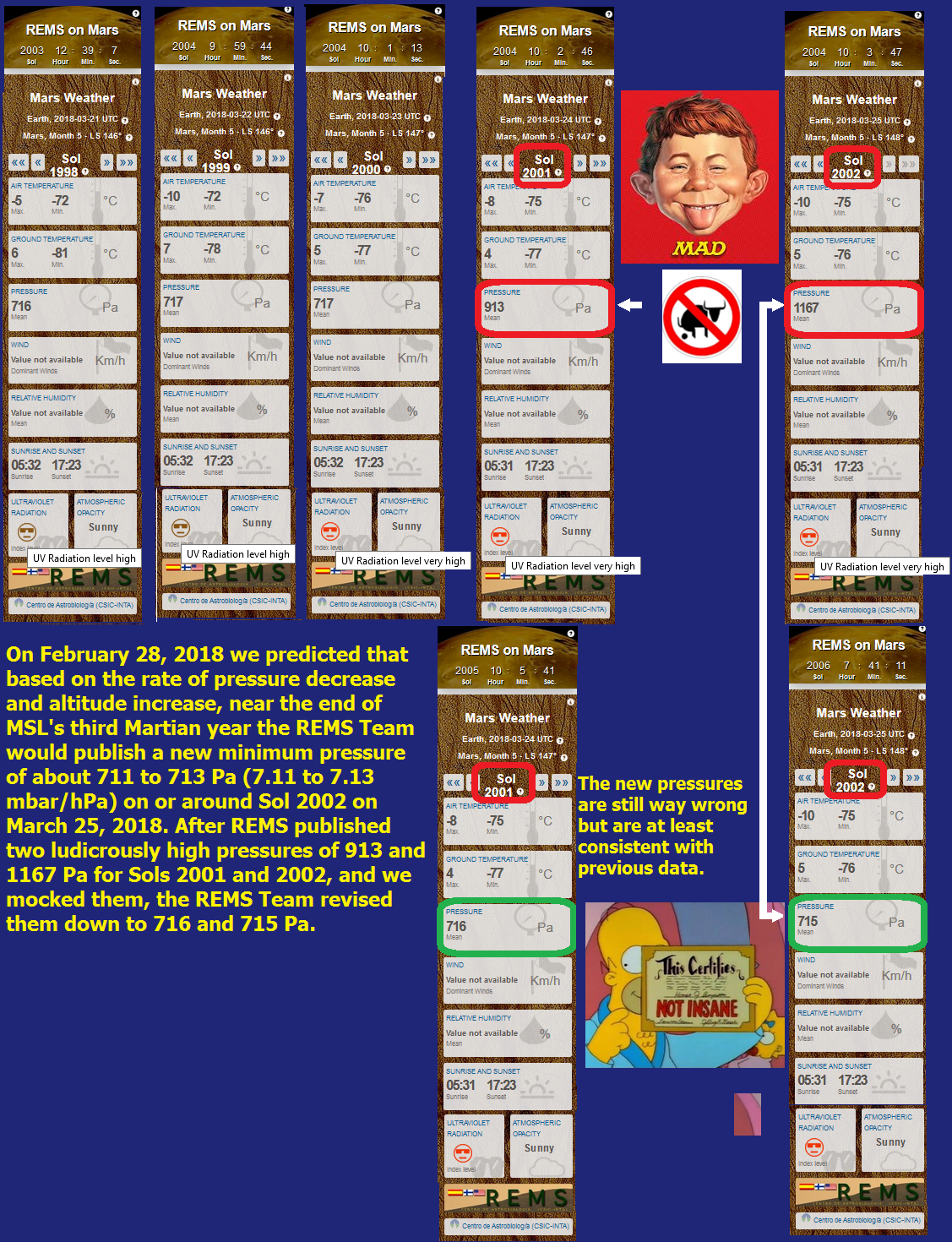 OUR GENERAL COMMENTS. The information provided above is largely for public relations purposes. It is our experience that Public Relations (PR) at JPL and NASA often quote facts that are very wrong or incomplete. As we note in Section 1 of our report, Mars Correct: Critique of All NASA Mars Weather Data, for Mars Science Laboratory (MSL) PR folks published totally wrong, never changing for wind direction and speed for 9 months, and likewise never changing sunrise and sunset time for a similar period of time until we contacted Guy Webster at JPL and convinced him to alter the wind data to N/A and to alter sunrise sunset times to within one minute of our calculations. We would like to see the reports for projects like the helo attempt written by technicians who both understand their projects completely and who can write the overview given to the public. These overviews should not be dumbed down to the level of an 8th grader. Fortunately, we found much of what we needed at https://rotorcraft.arc.nasa.gov/Publications/files/Balaram_AIAA2018_0023.pdf with the article entitled Mars Helicopter Technology Demonstrator by J. (Bob) Balaram et. al (2018).